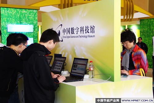 中国数字科技馆中的节能减排科普知识吸引众多公众