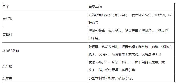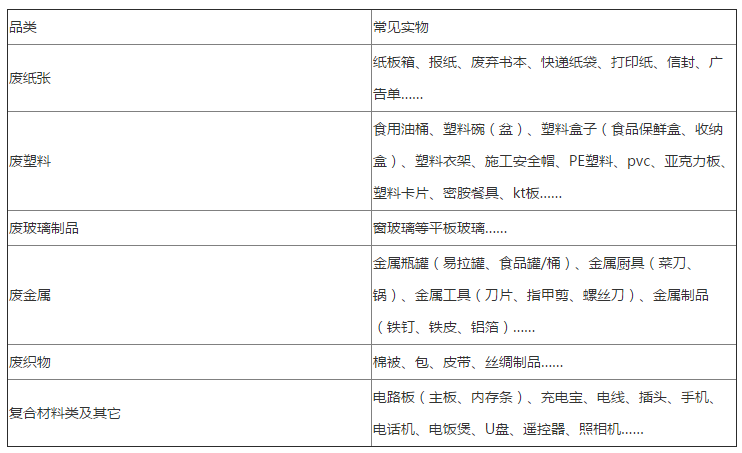 注:各区可结合本区低价值可回收物补贴政策及实际情况增加可回收物品类。