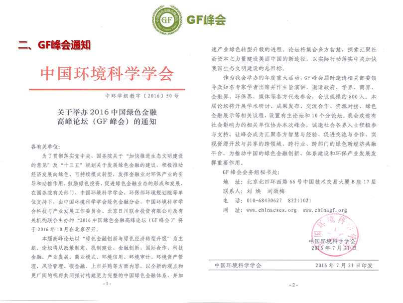 2016年第二届中国绿色金融高峰论坛