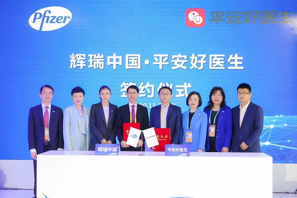 在第三届中国国际进口博览会上,辉瑞举办了“专业、创新、合作、突破” 辉瑞中国业务优化与创新圆桌论坛暨合作签约仪式。活动期间,辉瑞与国内领先的互联网医疗平台及公益组织 -- 平安好医生、京东健康、阿里健康及红十字基金会签署了战略合作协议。辉瑞将携手合作伙伴共同聚焦医患服务,提供给患者可信、可及、可持续的全程管理,以科技创新驱动我国健康医疗发展,共同加速互联网医疗生态圈建设。