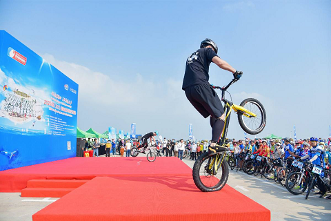 除了休闲骑行,主办方还策划了丰富多彩的互动娱乐活动。精彩、刺激的小轮车特技表演,趣味十足的自行车骑行绕桩赛,比谁更慢的自行车慢骑挑战赛,以及骑行台竞赛、山地自行车拼装赛等等,展示出自行车运动不一样的“玩法”,吸引了现场不少市民游客踊跃体验参与。