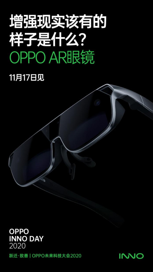 OPPO今日宣布,新一代OPPO AR眼镜将于11月17日举办的OPPO未来科技大会2020 (OPPO INNO DAY 2020)期间正式发布。
