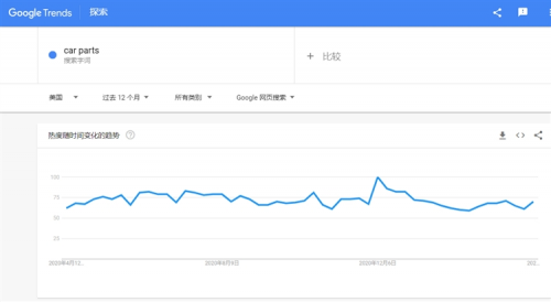 从Google Trends可以看出,汽配搜索量一年以来一直处于较平稳的状态,并无淡旺季的区分,消费者对于汽配的需求兴趣不减。