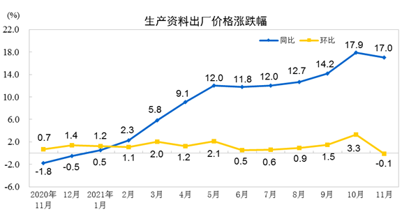 2021年11月PPI同比上涨12.9% 环比持平