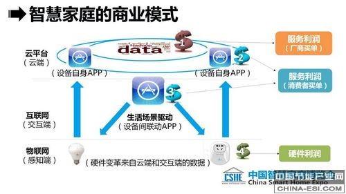 【第一个数据化】是指机器设备之间要有数据模型来实现控制,纯粹的连接是没有价值的。【第二个数据化】是指将智慧生活经验数据化,包括生活经验数据、医疗保健数据等,有效实现数据的存储、传输及使用。运用了数据化模型的机器加上数据化的生活经验,两者的结合将成为未来物联网智慧产业的“商品”,实现持续盈利。而“智慧家庭”的最大价值,就表现在物联网将数据化服务推送到家庭,而互联网只是将信息推送到个人。