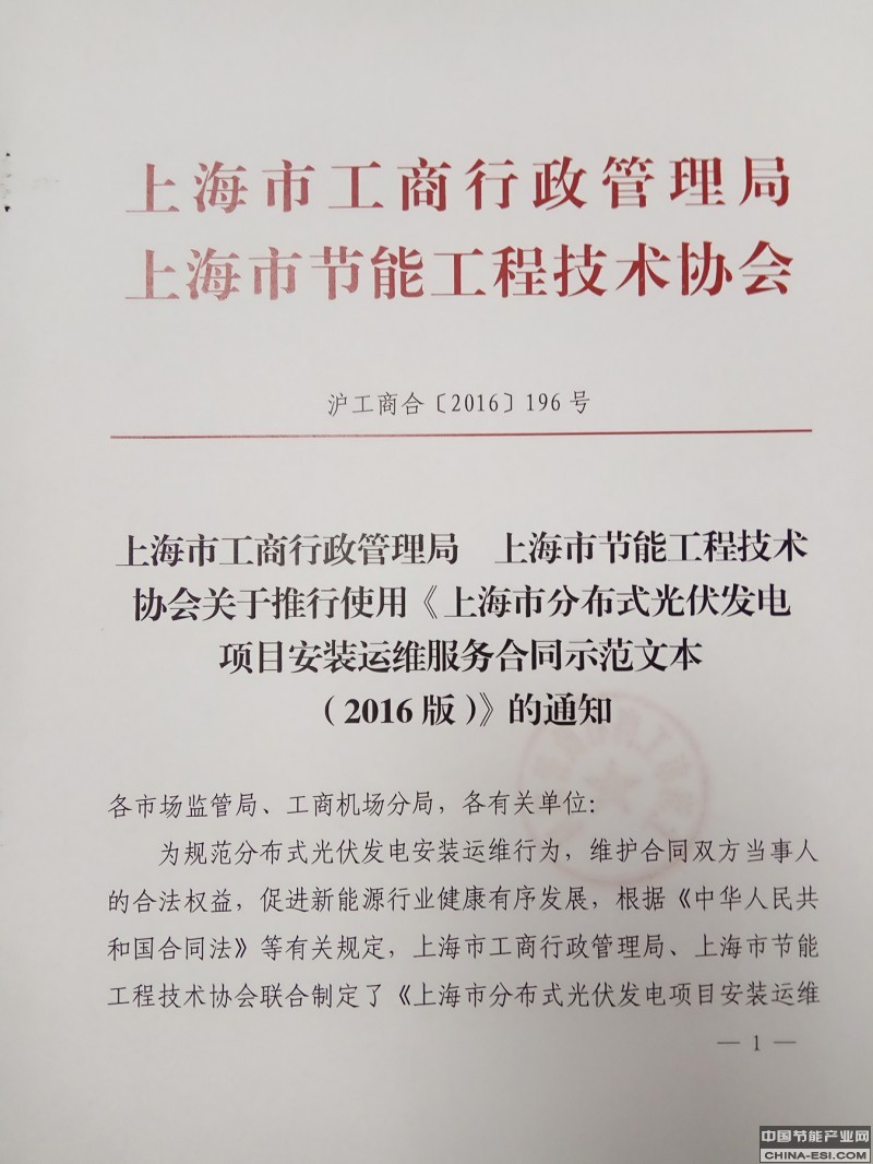 为规范分布式光伏发电安装运维行为,维护合同双方当事人的合法权益,促进新能源行业健康有序发展,根据《中华人民共和国合同法》等有关规定,上海市工商行政管理局、上海市节能工程技术协会联合制定了《上海市分布式光伏发电项目安装运维服务合同示范文本(