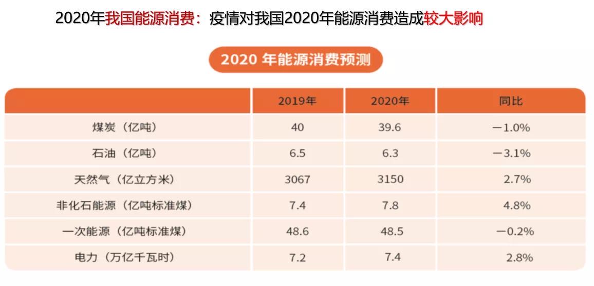 2020年突如其来的疫情对我国能源消费造成较大影响。《中国能源发展报告2019》预计,2020年,一次能源、煤炭和石油消费都将出现下降,非化石能源、天然气和电力消费保持增长,但增速有所回落。一次能源消费总量约48.5亿吨标准煤,比2019年下降0.2%。