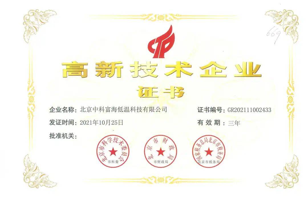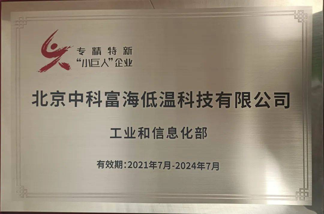 中科富海是国际上少数几家拥有自主知识产权20K-2K大低温核心关键技术的企业之一,具备大型低温核心装备设计制造能力,先后荣获国家级专精特新“小巨人”企业、国家知识产权优势企业、工信部工业企业知识产权运用试点企业、北京市企业技术中心、北京市科学技术二等奖和北京市新技术新产品等多项荣誉资质,并入选“2022中国潜在独角兽企业”。