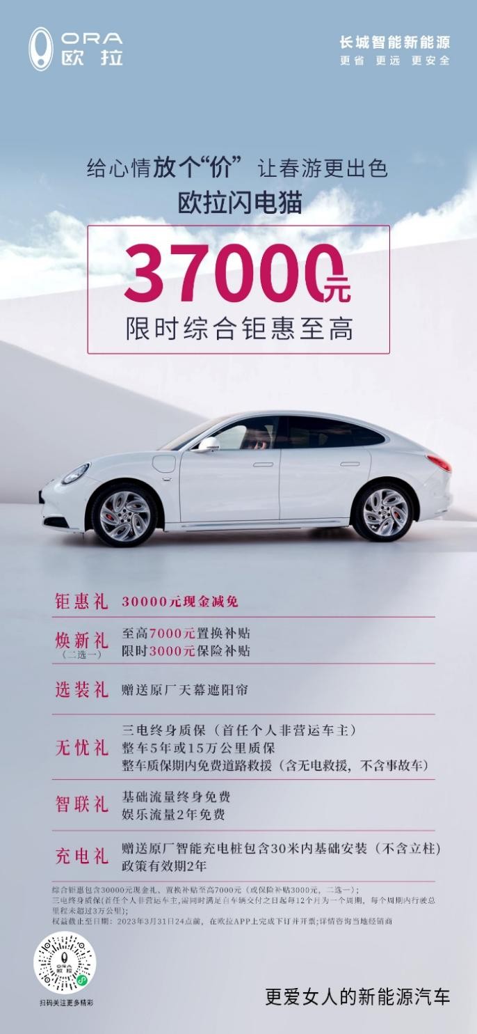 春风裹挟着几分暖意缓缓而来,生活、工作渐入佳境的同时,又怎可辜负这大好春光,赏景、踏青也该提上日程啦!3月1日至31日,欧拉闪电猫开启新一轮购车福利大放送,多重好礼重磅来袭,限时综合钜惠至高37000元。趁着春色渐浓,是时候给心情放个“价”!