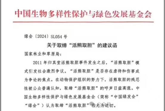 2011年归真堂活熊取胆事件发生之后,“活熊取胆”模式引发社会激烈争议。“活熊取胆”是否存在虐待和伤害成为争论的焦点。在动物保护组织的努力下,活熊取胆的残忍性被公众普遍认知,取缔“活熊取胆”的呼声日益高涨。中国生物多样性保护与绿色发展基金会(简称“中国绿发会”“绿会”)认为取缔“活熊取胆”已尤为迫切。