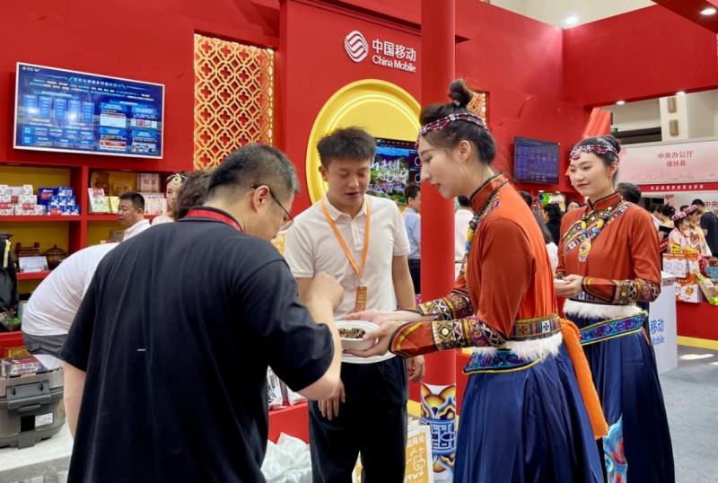 开幕式上集中展示了中国移动、中国一汽和鞍钢集团三家央企的定点帮扶和乡村振兴工作成效。其中,中国移动定点帮扶的海南白沙县黎族、中国一汽定点帮扶的吉林和龙市朝鲜族、鞍钢集团定点帮扶的新疆塔县塔吉克族分别带来了各自的优秀传统节目表演,洋溢出当地乡村振兴和民族团结的幸福感。9家参展商代表上台共同宣读了承诺书,表示要带动更多农户增收致富,为乡村全面振兴贡献更大力量。据悉,本次活动预计消费帮扶金额超过6000万元。