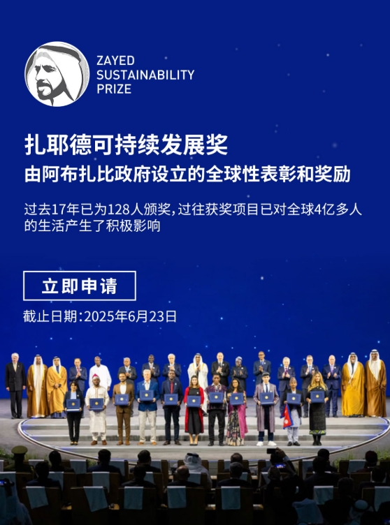 欲了解更多详情并提交申请,请检索“扎耶德可持续发展奖官网”。