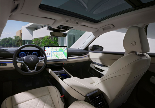颜值与空间上,速腾L堪称A+级尺寸、空间、颜值均衡之王。新车拥有4812mm的A+级最长车身,依托紧凑动力总成与车身结构设计,实现84.5%的同级最优得房率,1849mm的同级最大纵向乘坐空间可媲美B级车,搭配21处精细化储物空间,彻底解决家庭出行收纳难题。整车姿态舒展动感,IQ.Light像素矩阵大灯由32颗LED灯独立控光,搭配Surface LED尾灯与行业首创可翻转发光尾标,夜间辨识度拉满;座舱内30色氛围灯搭配软质透光门板饰条,搭配6种车身颜色与新增浅色内饰,兼顾质感与温馨感。