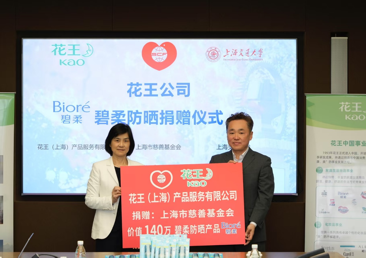 为践行企业社会责任,切实守护年轻人的肌肤健康,花王(中国)携旗下碧柔品牌再次通过上海市慈善基金会,面向高校展开捐赠活动,全年共捐赠价值近300万元碧柔防晒产品。以兼具“高倍防晒力与水润肤感”的碧柔防晒,为高校学子提供专业、安心的肌肤守护。5月,花王(上海)产品服务总经理住谷敦出席捐赠仪式,表示大学生群体是碧柔品牌长期关注的人群,希望这份心意成为同学们青春路上的温暖陪伴。花王(中国)始终相信,公益是传递温暖、凝聚善意的旅程,希望通过这样的实际行动,传递温暖与关怀,并呼吁更多社会力量共同参与公益,携手构建更友好、更互助的校园与社会环境。