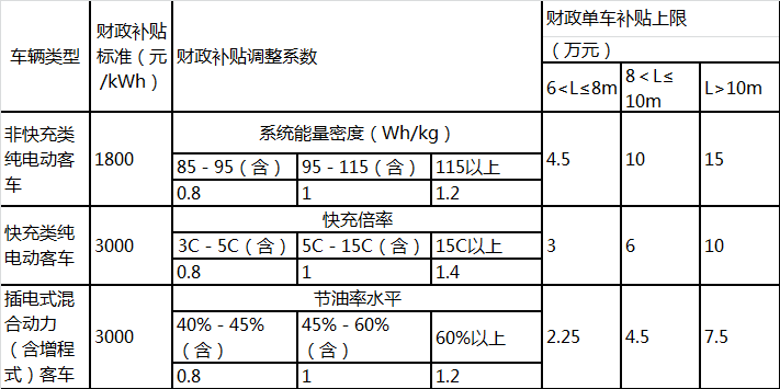 1、新能源公交车补贴金额=车辆带电量x单位电量补贴标准x调整系数(调整系数:系统能量密度/充电倍率/节油水平),具体如下: