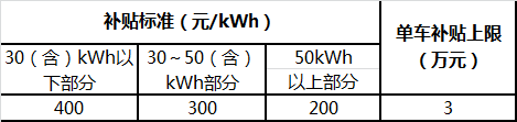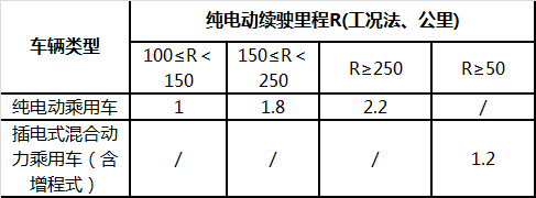 (一)新能源乘用车、插电式混合动力(含增程式)乘用车推广应用补贴标准如下: