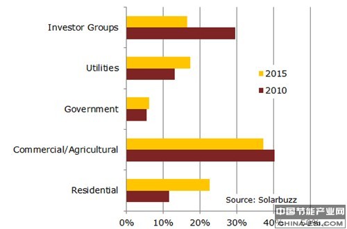 2010年销售的组件中38%是从厂商/中间商卖到了安装商,37%经由批发商渠道,25%直接到终端市场。