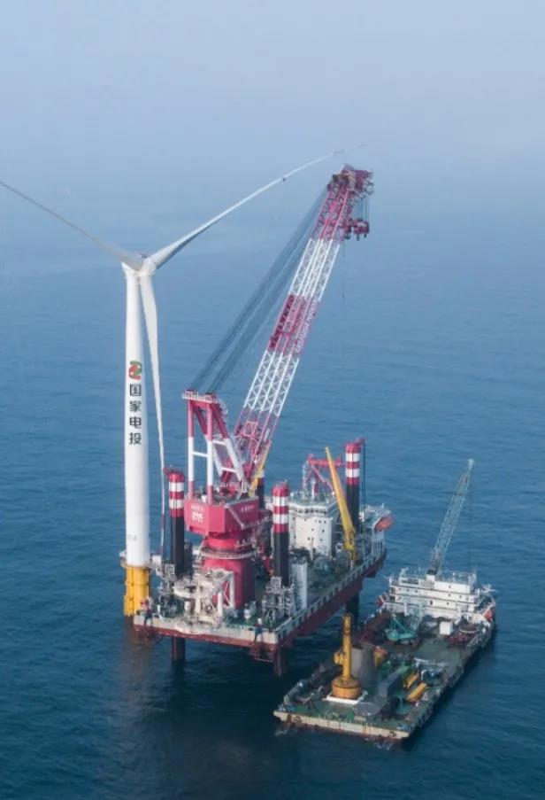 湛江徐闻600MW海上风电项目投资超过百亿,是亚洲在运单体容量最大的风电项目,投产后每年可提供17.56万亿度清洁电能,节省标煤约56.68万吨,减少二氧化碳排放约114.54万吨。本工程自2020年12月13日基础施工正式开工建设,2021年8月22日主体工程完成,2021年11月19日全容量并网,历时11个月投产试运行。建设工程量基础沉桩59根、风机吊装49台以及1座220kV海上升压站安装。