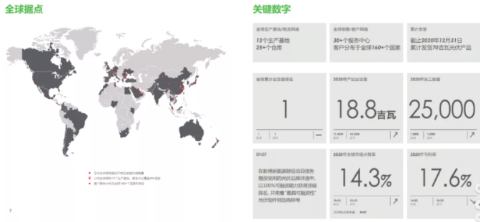 成立于2006年、早在2010年于纽交所上市的这一公司,15年来一直是无数神话的缔造者:2009年运行了中国第一条的NPC技术全自动组件生产线;2013年成为首家恢复盈利的企业,2016年成为全球最大组件制造商并随后连续4年高居出货量首位,2020年营收突破336亿。企业在80%的全球主要光伏出货区实现组件销量的第一。近年来,企业的年复合增长率高达17.19%。