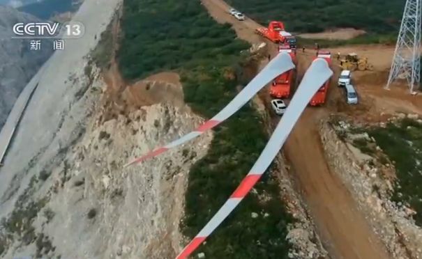 近期,山西运城盘山路上运输风力发电机叶片到山顶的一段视频,引发了网友的广泛关注。