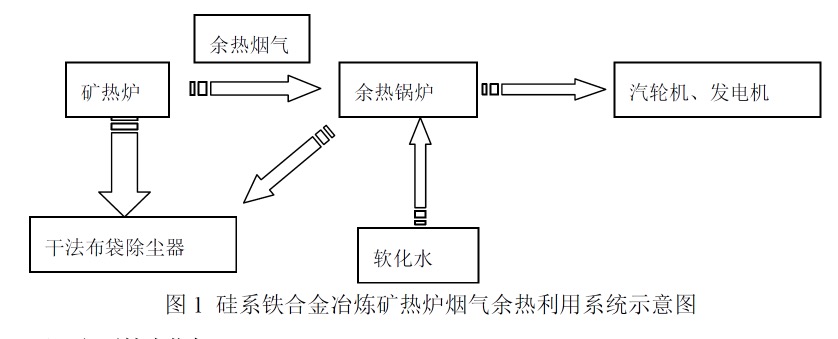 矿热炉高温烟气导入余热锅炉,蒸汽驱动汽轮机组从而带动发电。当余热发电设备出现故障或进行正常维修时进行烟气导出转换,恢复现有除尘状态。