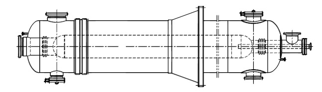 在重整、芳烃、乙烯等装置中,高温反应出料与低温反应进料在进料换热器中换热,从而达到回收大量反应热及节能的目的。换热器原理图及工艺流程图见图1、图2。