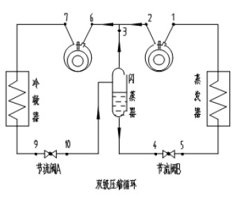 图1 双级压缩循环工艺流程图