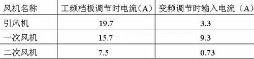 由于在相同条件下风压和流量的大小与电机电流的大小成正比所以这里只用工频运行档板调节时的电机电流和变频调节时变频器的输入电流作一比较从而说明节电效果。
